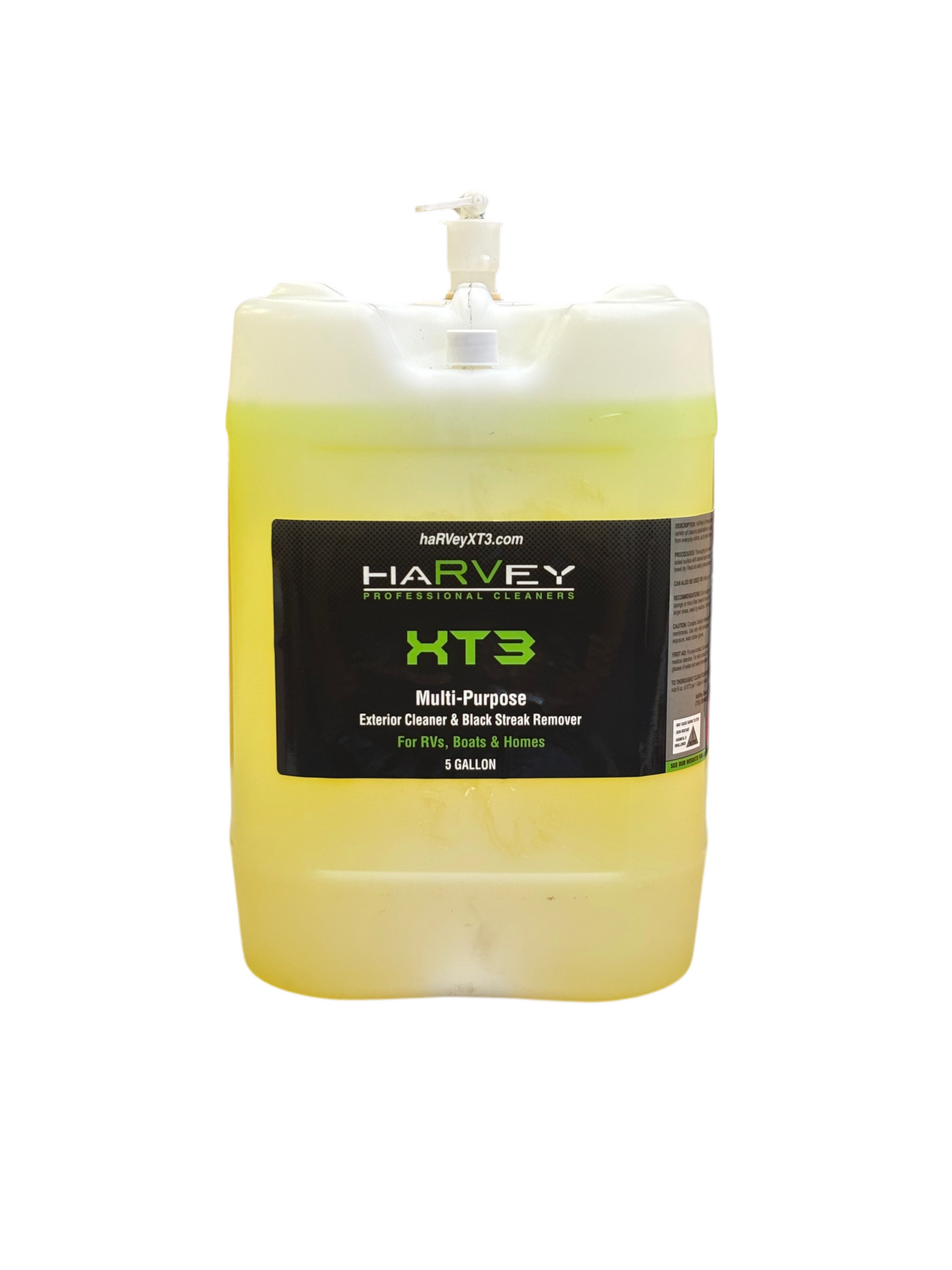 HaRVey XT3 is a versatile, expert-grade cleaner designed for RVs, boats, homes, and businesses. This all-in-one formula effectively removes dirt, grime, and the toughest black streaks, restoring surfaces to a clean, streak-free finish. Ideal for a range of cleaning needs, it delivers professional results with ease.