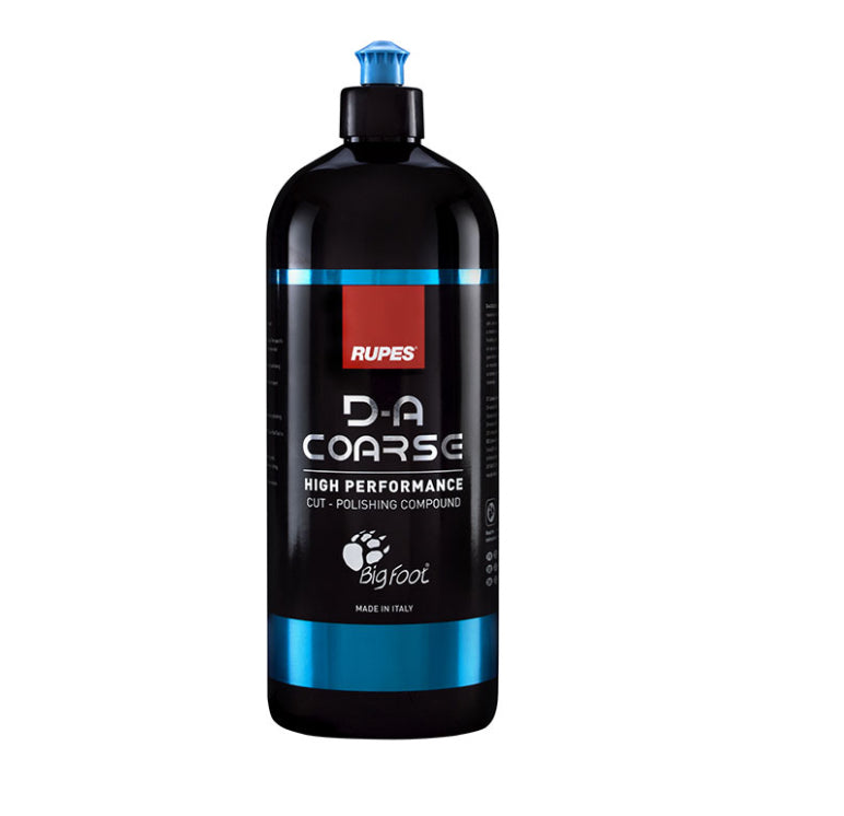 The Rupes DA Coarse Compound is designed to remove defects and deliver an impressive finish for stunning results! This compound continues the BigFoot polishing system tradition with fast cutting, impressive finishing capability, and smooth operator experience. DA Coarse Compound is specially formulated to maximize the polishing power of all dual-action polishers, including random orbital (i.e. BigFoot Random Orbital Polisher) and gear-driven tools (i.e. BigFoot Mille LK900E). Use DA Coarse Compound with Rupes DA Coarse Cutting Foam Pad Blue, wool pads, or microfiber pads to remove up to 1500 grit sand scratches on most automotive paints, gelcoat, and similar surfaces. It safely removes swirls, scratches, oxidation, etc. so the surface is free from notable defects that cause a dull appearance. Even with this heavy cutting ability, you will experience low dusting and extremely easy wipe off after use. Pick up the Rupes DA Coarse Compound and remove heavy imperfections today!